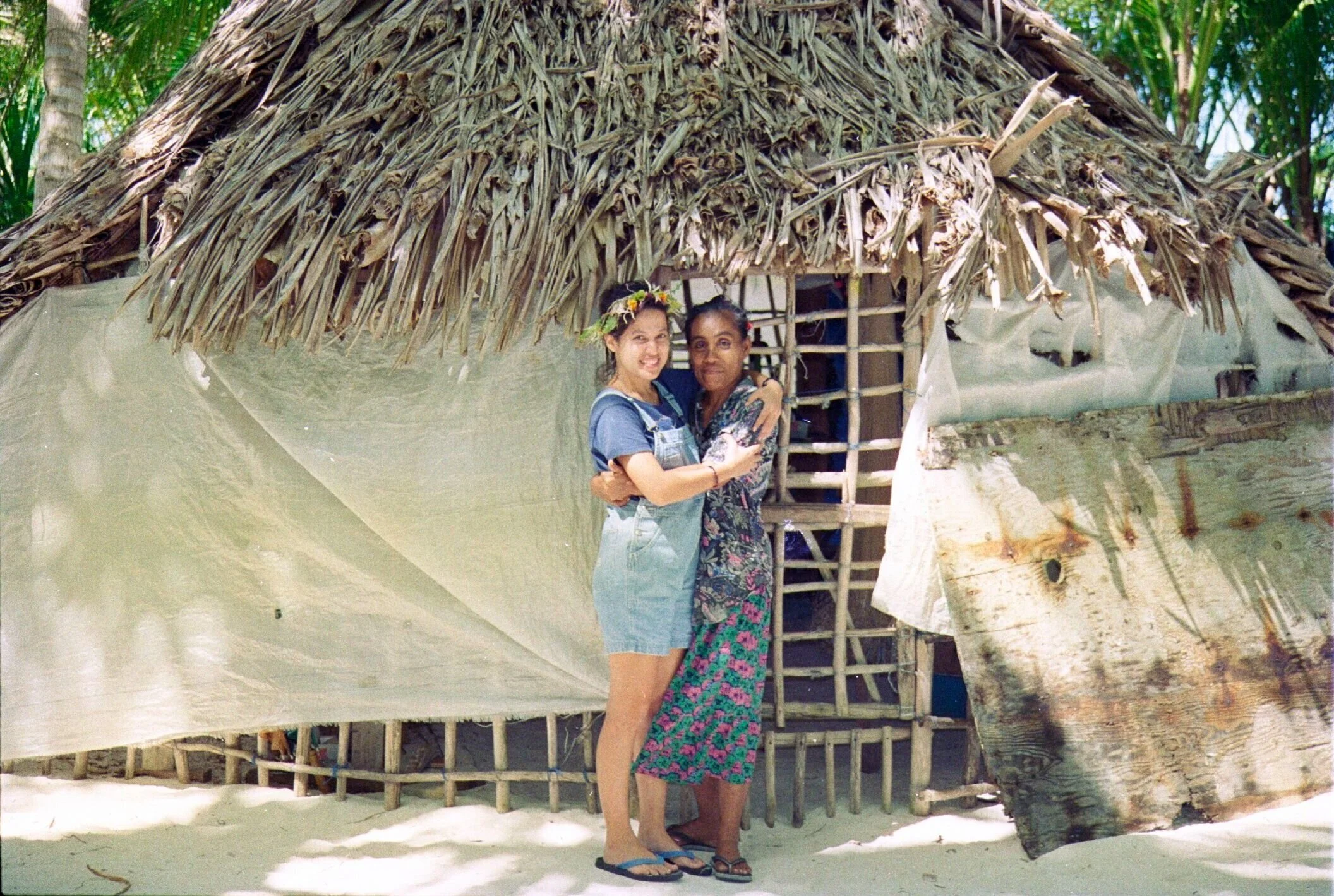Lola wearing a mwarmwar with Mama Sarlote on Satowan Atoll (1998)